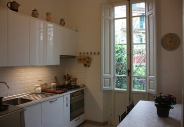 L'intero appartamento è sicuramente la soluzione migliore per una famiglia od un gruppo di amici. Avrete a disposizione l'intera casa. Al piano terra troverete l'ampio salone con la libreria ed una zona per i vostri bambini, la zona internet con a disposizione il computer e la stampante, una camera da letto con il piccolo bagno interno con affaccio sul giardino, la cucina attrezzata con tutto il necessario, dalla lavastoviglie, al forno e molto altro ed il giardino, qui avrete a disposizione la lavanderia con la lavatrice e l'asciugatrice. Al primo piano, attraverso una bella scala raggiungerete il ballatoio, qui ci sono le altre due camere, una con affaccio sul giardino interno, questa ha anche una bella veranda attrezzata con poltrone e tavolino, l'altra che da sul lato strada. Al piano di sopra ci sono altri due bagni. Il primo completo, con vasca/doccia e bidet, il secondo più piccolo con doccia. In ogni bagno troverete anche la crema idratante viso e corpo,il vanity kit e tutto l'occorrente per una doccia/bagno rilassante.