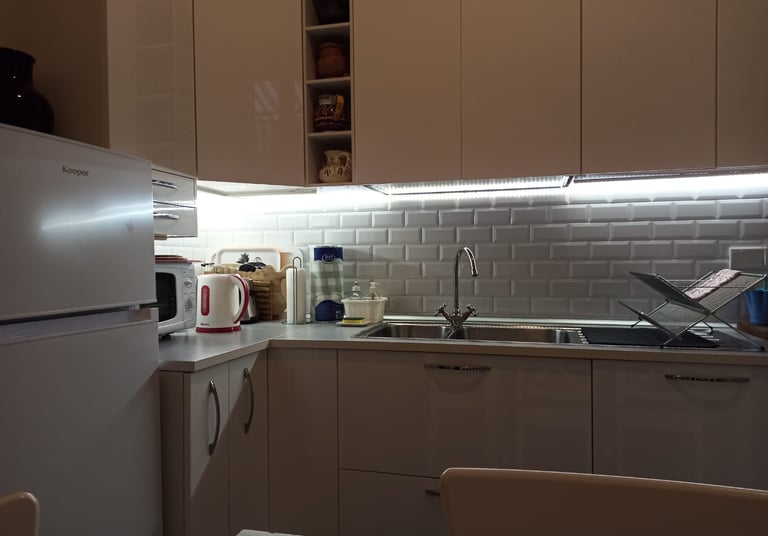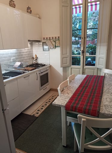 *Una cucina, che da sul giardino, completa con forno a micronde, bollitore, tostapane, lavastoviglie ed altri comfort. Qui potrete prepararvi piccoli spuntini o la pappa per il vostro bimbo.